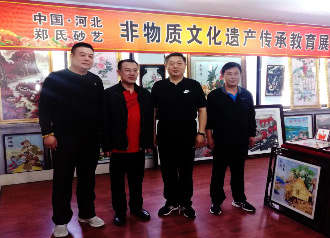 在鄭氏砂藝文化公司非物質(zhì)文化遺產(chǎn)傳承教育展示廳,公司總經(jīng)理鄭鐵軍同志就目前公司的經(jīng)營(yíng)發(fā)展和今后產(chǎn)業(yè)布局構(gòu)想向李司令員一行作了詳細(xì)介紹,李司令員在詳細(xì)了解了砂畫的歷史文化和制作流程后,對(duì)鄭氏砂藝的文化傳承表示肯定,對(duì)鄭鐵軍總經(jīng)理“繼承祖?zhèn)魉囆g(shù),傳承正能量文化”的精神表示欽佩。鄭鐵軍總經(jīng)理對(duì)李司令的支持和鼓勵(lì)表示衷心的感謝,并表示公司將在保持傳承傳統(tǒng)手工藝的基礎(chǔ)上,繼續(xù)研發(fā)新工藝、新產(chǎn)品,以保障砂畫的藝術(shù)價(jià)值和文化價(jià)值!