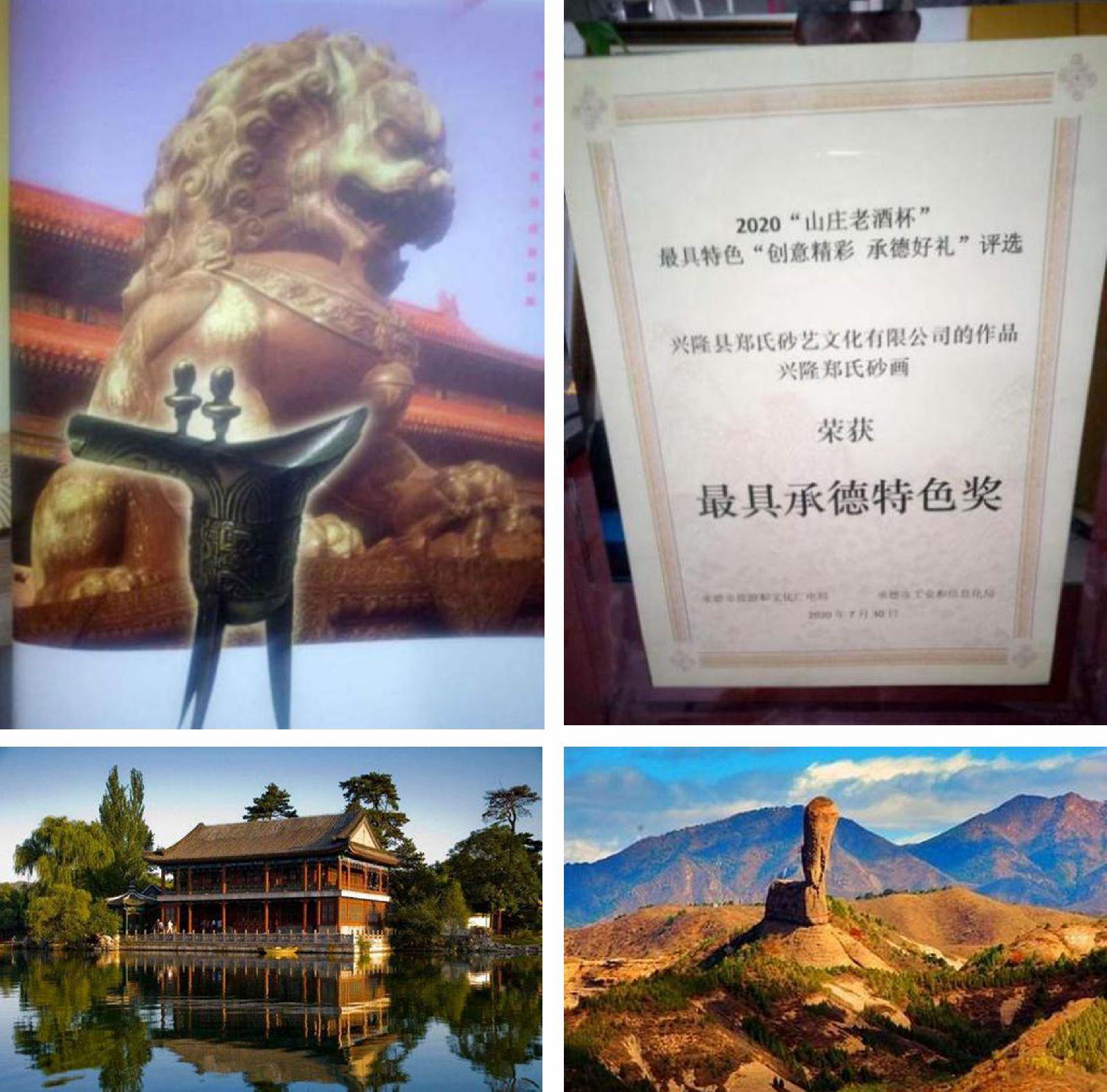9月10日。在承德市舉辦的2020“山莊老酒杯”承德最具特色的“創(chuàng)意精彩,承德好禮”評選頒獎儀式暨山莊老酒文化產業(yè)園4A級旅游景區(qū)授牌儀式上,我縣鄭氏砂藝文化有限公司選送的砂畫作品,榮獲“最具承德特色獎”。