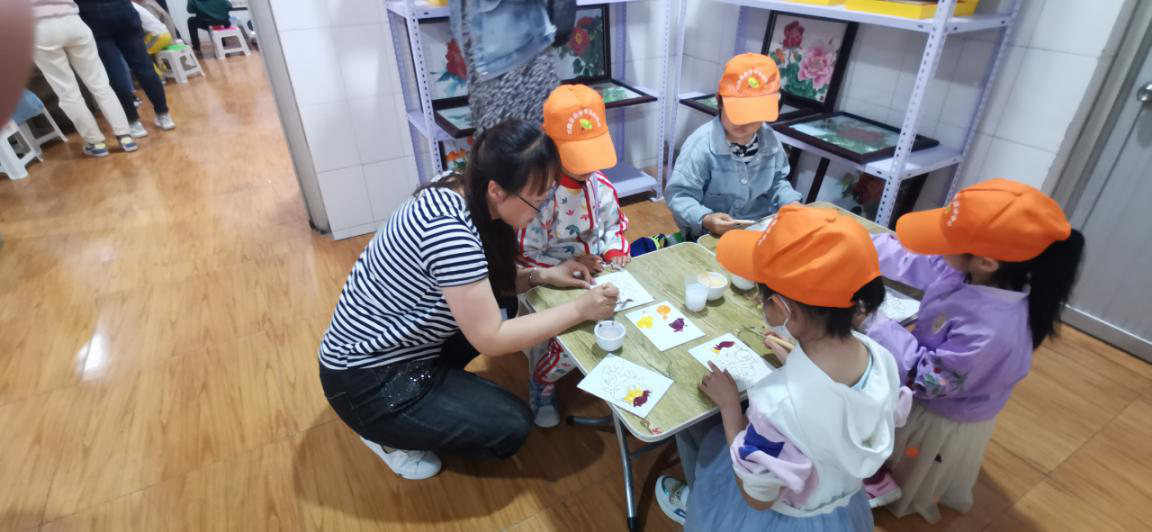 參加此次研學(xué)活動(dòng)的師生共計(jì)180余人,小朋友們?cè)谖夜局v解員的帶領(lǐng)下興致勃勃的參觀了鄭氏砂畫,了解了鄭氏砂藝“非遺”文化的發(fā)展歷程、工藝技術(shù)和傳承意義,觀看了砂畫制作解析視頻,最后進(jìn)行了砂畫的實(shí)際操作。