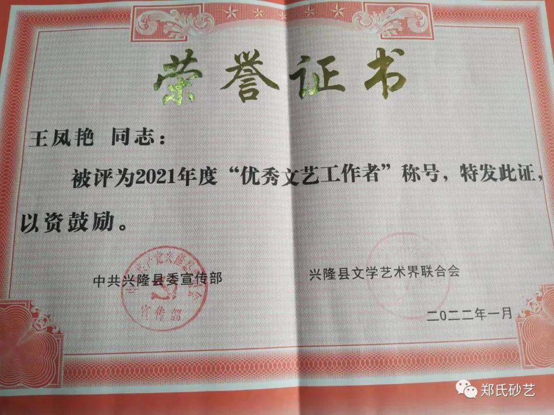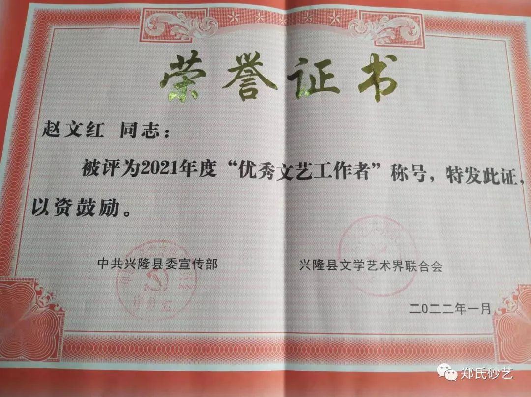 近日,縣委宣傳部、縣文聯(lián)發(fā)表了《關(guān)于表彰2021年度優(yōu)秀文藝家協(xié)會(huì)、優(yōu)秀村級(jí)文聯(lián)、優(yōu)秀企業(yè)文聯(lián)、優(yōu)秀文藝工作者的決定》,文中指出“2021年,在縣委、縣政政府的堅(jiān)強(qiáng)領(lǐng)導(dǎo)下,在市文聯(lián)的直接指導(dǎo)下,全縣廣大文藝工作者,深入學(xué)習(xí)貫徹黨的十九大和習(xí)近平文藝座談會(huì)上的講話精神,在‘鄉(xiāng)村振興黨旗紅·文藝創(chuàng)新樹先鋒’和‘文藝名村’建設(shè)實(shí)踐活動(dòng)中,辛勤耕耘,積極創(chuàng)作,服務(wù)人民,為繁榮全縣文藝事業(yè)做出了積極貢獻(xiàn),涌現(xiàn)出了一大批表現(xiàn)突出、成績(jī)優(yōu)異的文藝工作者。”在此次通報(bào)表彰中,鄭氏砂藝董事長(zhǎng)鄭鐵軍、徐書英、王鳳艷、趙文紅、張國新、王建寶、張玉紅、張秀榮、王婷共9人被縣委宣傳部和縣文聯(lián)授予2021年度“優(yōu)秀文藝工作者”稱號(hào)。企業(yè)將繼續(xù)開拓創(chuàng)新,潛心創(chuàng)作,努力發(fā)掘出更多文藝人才,壯大鄭氏砂藝藝術(shù)研究所,創(chuàng)作出更多文藝精品,為推進(jìn)新時(shí)代興隆縣文藝事業(yè)繁榮發(fā)展作出新的更大貢獻(xiàn)。
