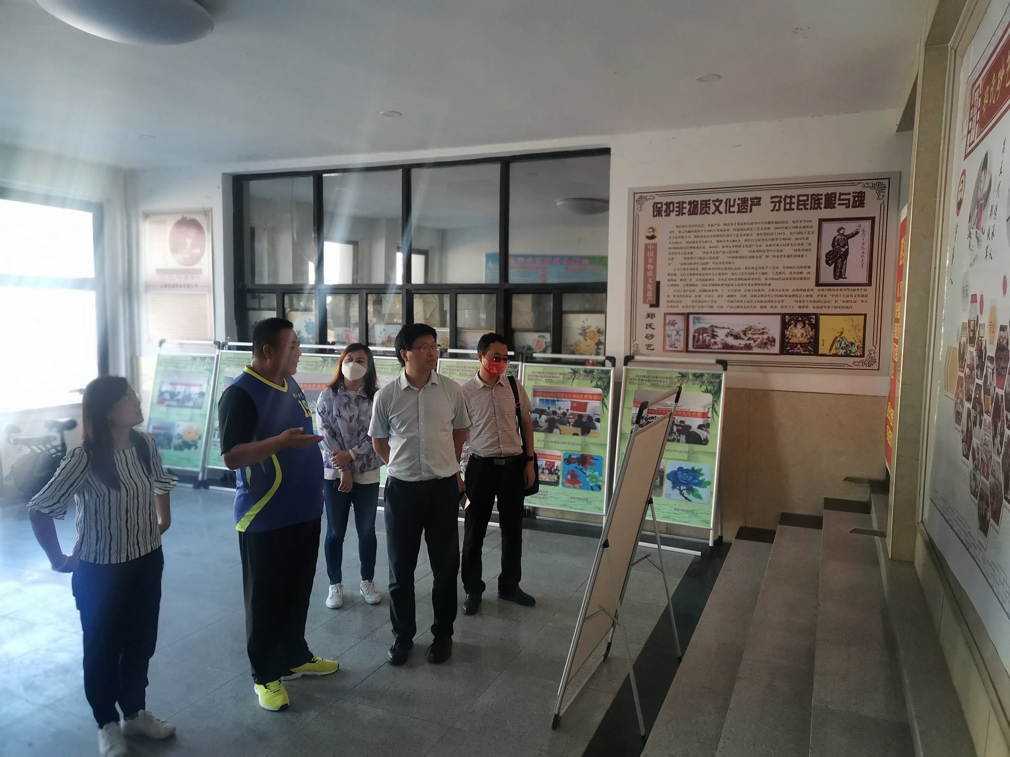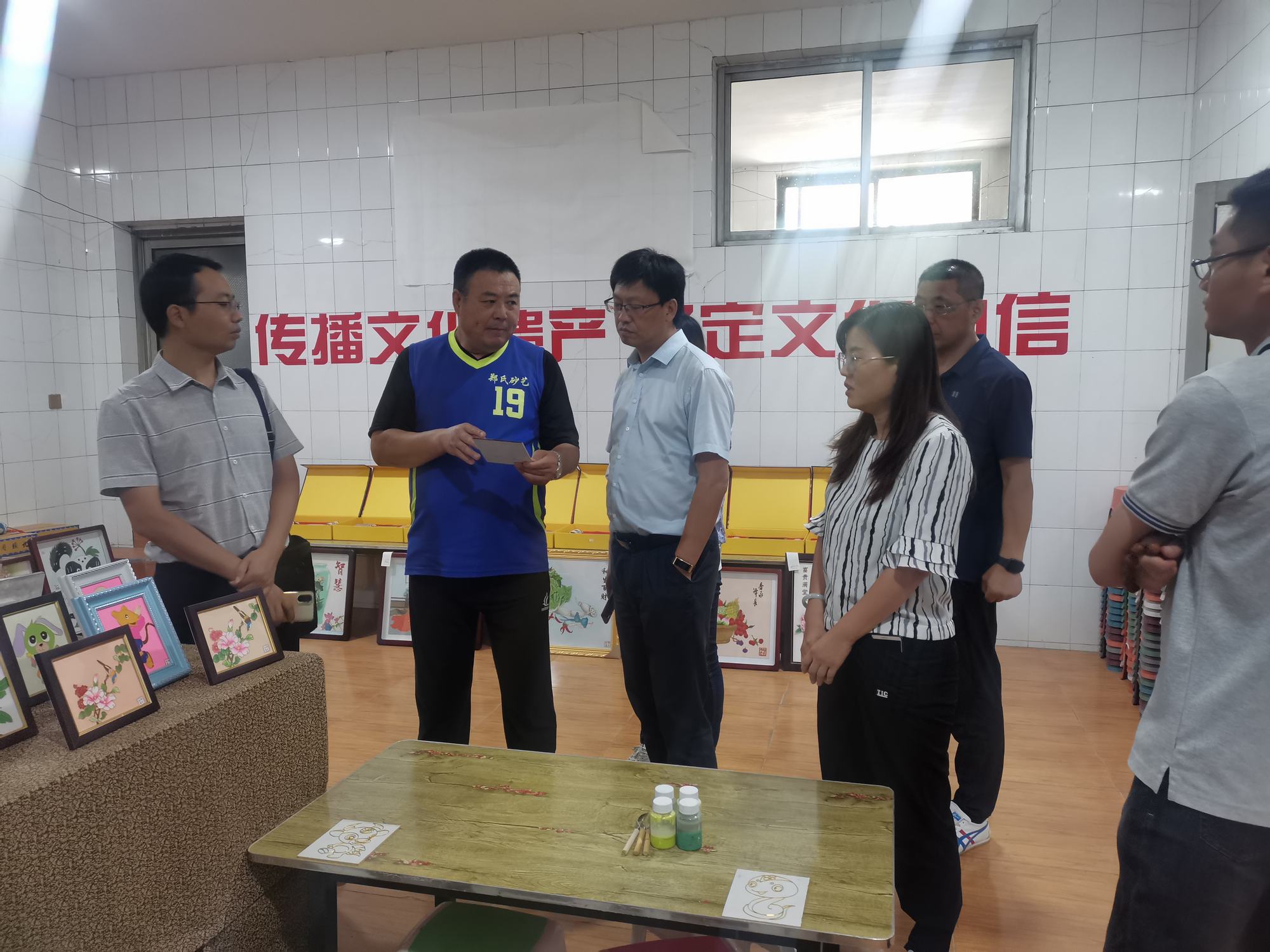 2022年8月19日,為了解河北省文化產(chǎn)業(yè)示范基地的發(fā)展情況,聚焦文化產(chǎn)業(yè)示范基地發(fā)展面臨的重點(diǎn)難點(diǎn)問題,總結(jié)提煉省內(nèi)優(yōu)秀文化產(chǎn)業(yè)示范基地工作中的成效和經(jīng)驗(yàn)做法。由河北省文化和旅游廳產(chǎn)業(yè)處副處長馬運(yùn)飛、河北大學(xué)新聞傳播學(xué)院副院長商建輝、河北省社會(huì)科學(xué)院省情研究所副所長張葳 、河北省科學(xué)院地理科學(xué)研究所主任趙桂燕、河北省科學(xué)院地理科學(xué)研究所副主任施俊莊組成的考察團(tuán)在承德市旅文局主任李丹、興隆縣旅文局副局長高子營的陪同下蒞臨鄭氏砂藝進(jìn)行考察指導(dǎo)。