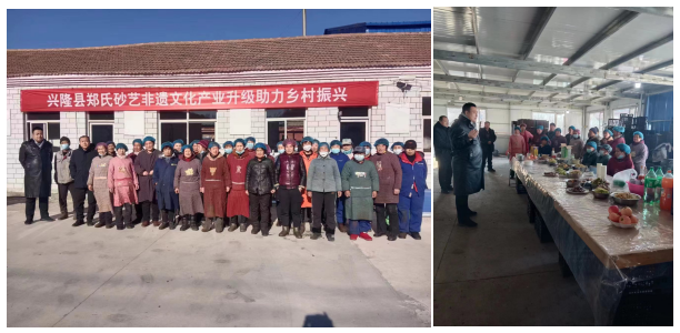 2021年11月,企業(yè)選址興隆縣李家營下臺子村原小學成立興隆縣鐵金研學基地,并結(jié)合當?shù)剞r(nóng)村農(nóng)民的農(nóng)業(yè)種植情況,組織當?shù)?03戶村民自愿聯(lián)合成立了農(nóng)民專業(yè)合作社,建立了鄭氏砂藝非遺文化產(chǎn)業(yè)升級助力鄉(xiāng)村振興就業(yè)工坊。在企業(yè)的引領(lǐng)下合作社展開了農(nóng)產(chǎn)品收購和初加工業(yè)務,此舉不但解決了農(nóng)民的就業(yè)問題,也解決了農(nóng)產(chǎn)品的銷售問題,切實的帶動了當?shù)厝罕娋徒蜆I(yè)、增收致富。
