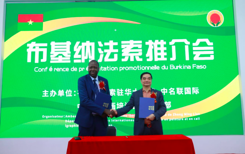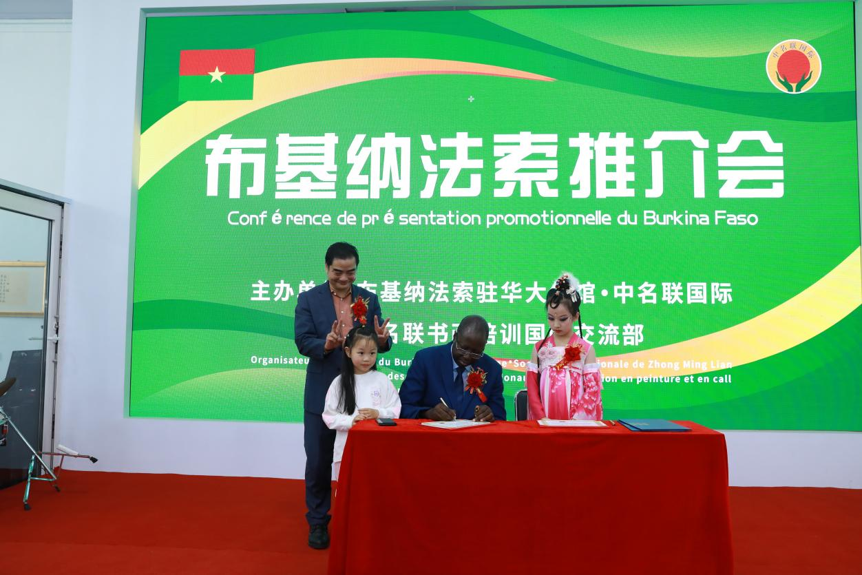(中名聯(lián)國際圖片說明:布基納法索國家推介會上,中名聯(lián)集團與布基納法索駐華大使館正式簽屬了合作協(xié)議。)