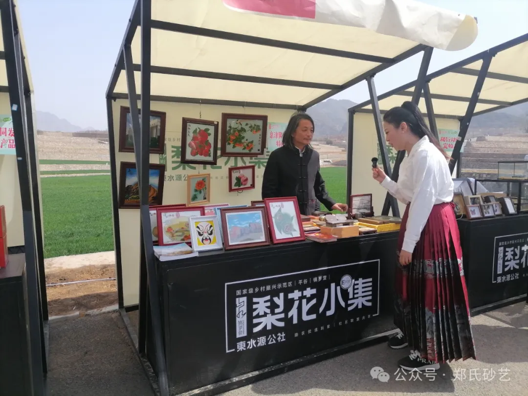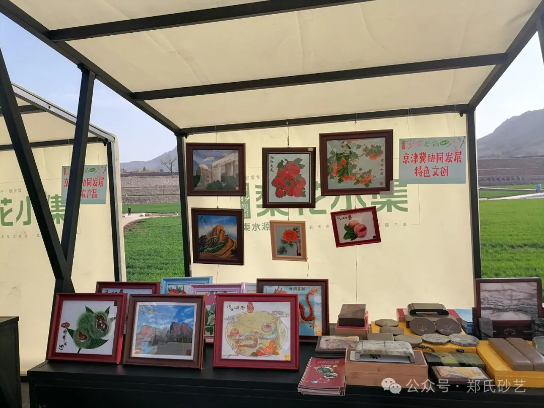 “忽如一夜春風(fēng)來(lái),千樹(shù)萬(wàn)樹(shù)梨花開(kāi)” 春風(fēng)正好,花開(kāi)有期。2024年4月8日上午,北京市平谷區(qū)鎮(zhèn)羅營(yíng)鎮(zhèn)人民政府舉辦的以“千載梨花頌、花漾鎮(zhèn)羅營(yíng)”為主題的梨花谷雨文化節(jié)活動(dòng)拉開(kāi)帷幕,為營(yíng)造“傳統(tǒng)文化+梨花美景”的活動(dòng)氛圍,鄭氏砂藝受邀參加了此次活動(dòng),并精心挑選了20余幅精品砂畫(huà)參加展出,展出作品涵蓋了紅火(山楂)、吉利(板栗)、平安(蘋(píng)果)、天文臺(tái)、興隆山風(fēng)光等興隆地區(qū)眾多的特色產(chǎn)品和獨(dú)特景點(diǎn),展出期間,鄭氏砂藝(畫(huà))作品以其材質(zhì)的新穎獨(dú)特,制作手法的精妙絕倫,畫(huà)面內(nèi)容的豐富多彩,吸引了眾多游客駐足觀賞,成為了自媒體和游客的拍攝打卡地。鄭氏砂藝用自己的藝術(shù)方式充分地向北京人們展示了興隆的文化特色,同時(shí)為平谷“梨花節(jié)”增添了濃厚的文化氣息。