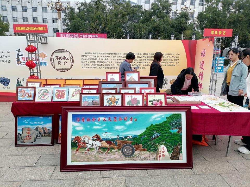 在展覽現(xiàn)場,鄭氏砂藝展區(qū)人頭攢動(dòng),熱鬧非凡。一系列精心創(chuàng)作的砂藝藝術(shù)品,如《國泰民安》《沿著社會(huì)主義大道奔前方》《興隆山》《霧靈山》《天文臺(tái)》及《紅紅火火》等,吸引了眾多觀眾的目光。這些作品不僅展現(xiàn)了鄭氏砂藝精湛的制作工藝和獨(dú)特的藝術(shù)風(fēng)格,更蘊(yùn)含了對(duì)祖國繁榮昌盛、人民幸福安康的美好祝愿。鄭氏砂藝的展品憑借其獨(dú)特的藝術(shù)魅力和深刻的主題內(nèi)涵,贏得了廣大父老鄉(xiāng)親的喜愛和贊賞。觀眾們紛紛駐足觀賞,拍照留念,更有不少人表示被這些作品深深打動(dòng),感受到了濃厚的愛國情懷和藝術(shù)氛圍。