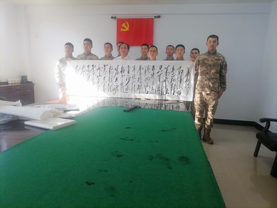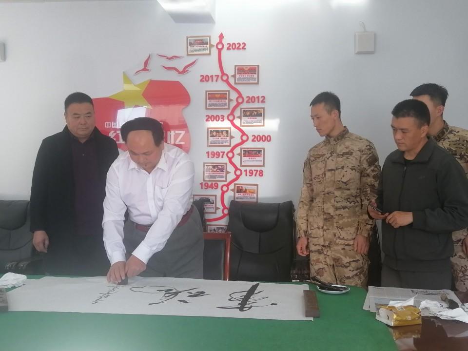 在此次活動(dòng)中,特型扮演者趙士奎老師為承德支隊(duì)官兵題寫了充滿激情的詩(shī)詞《長(zhǎng)征》及“軍魂”等書法作品,展現(xiàn)了其精湛的書法技藝和對(duì)傳統(tǒng)文化的深刻理解,贏得了官兵們的敬意。