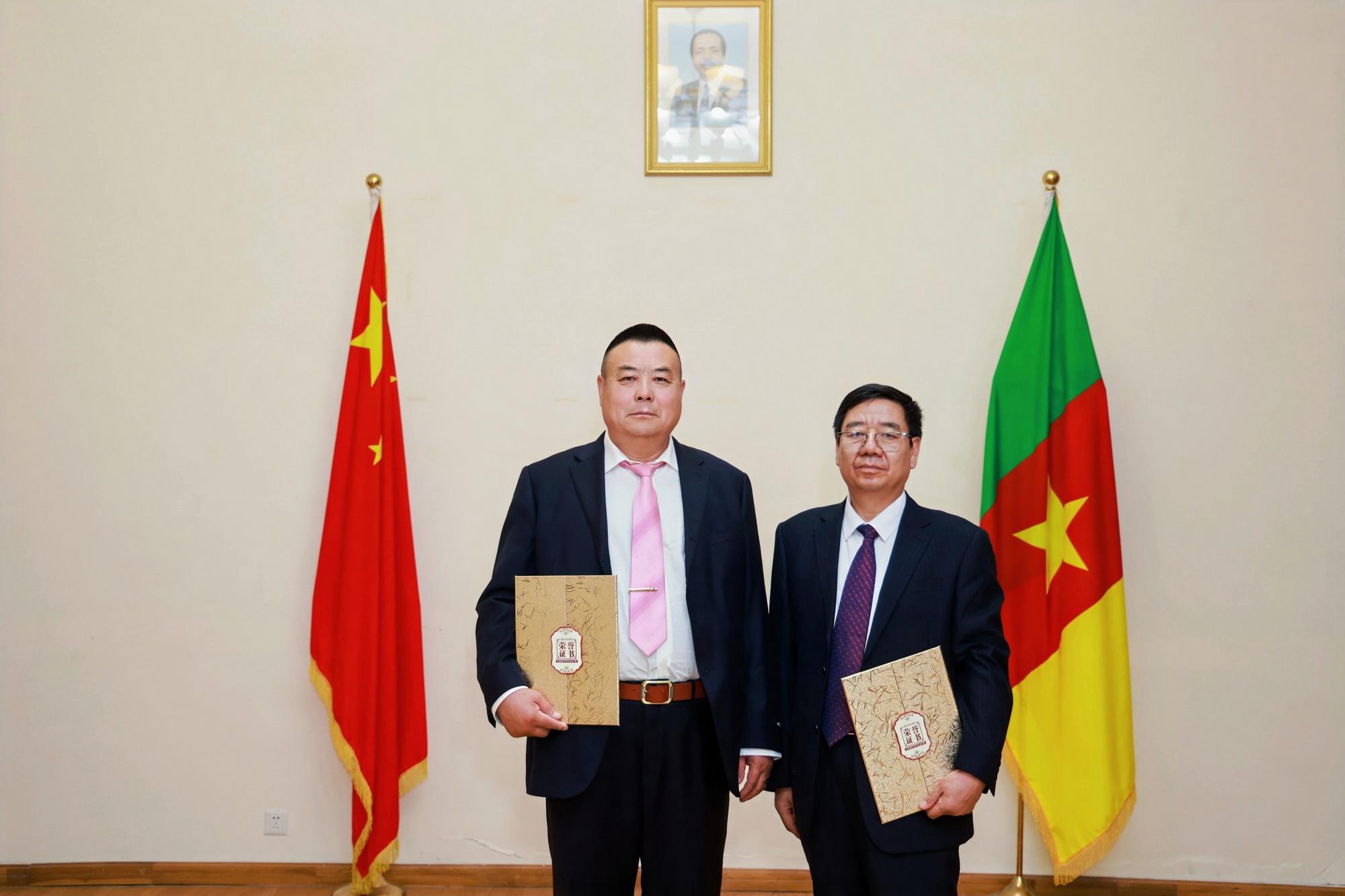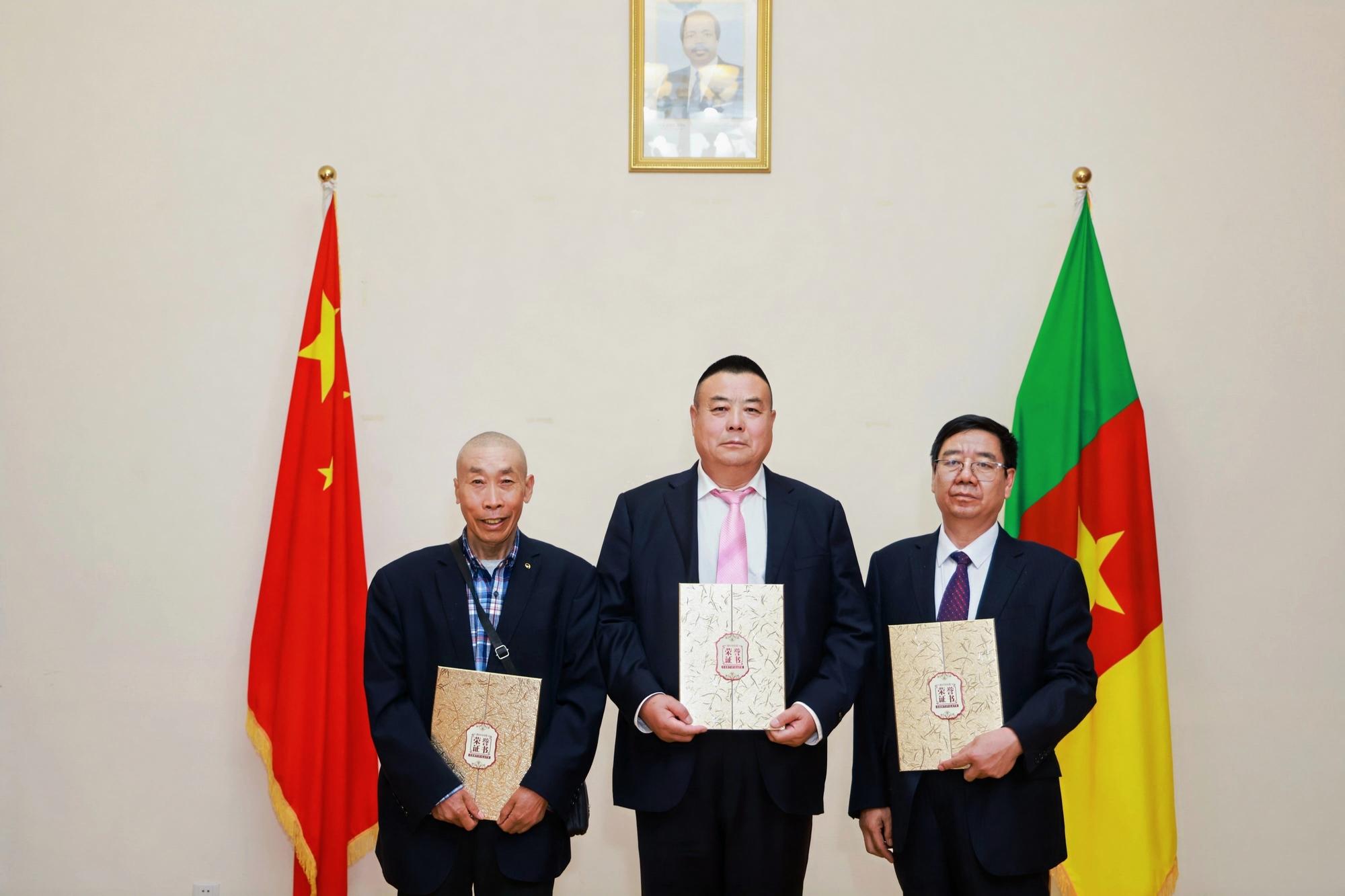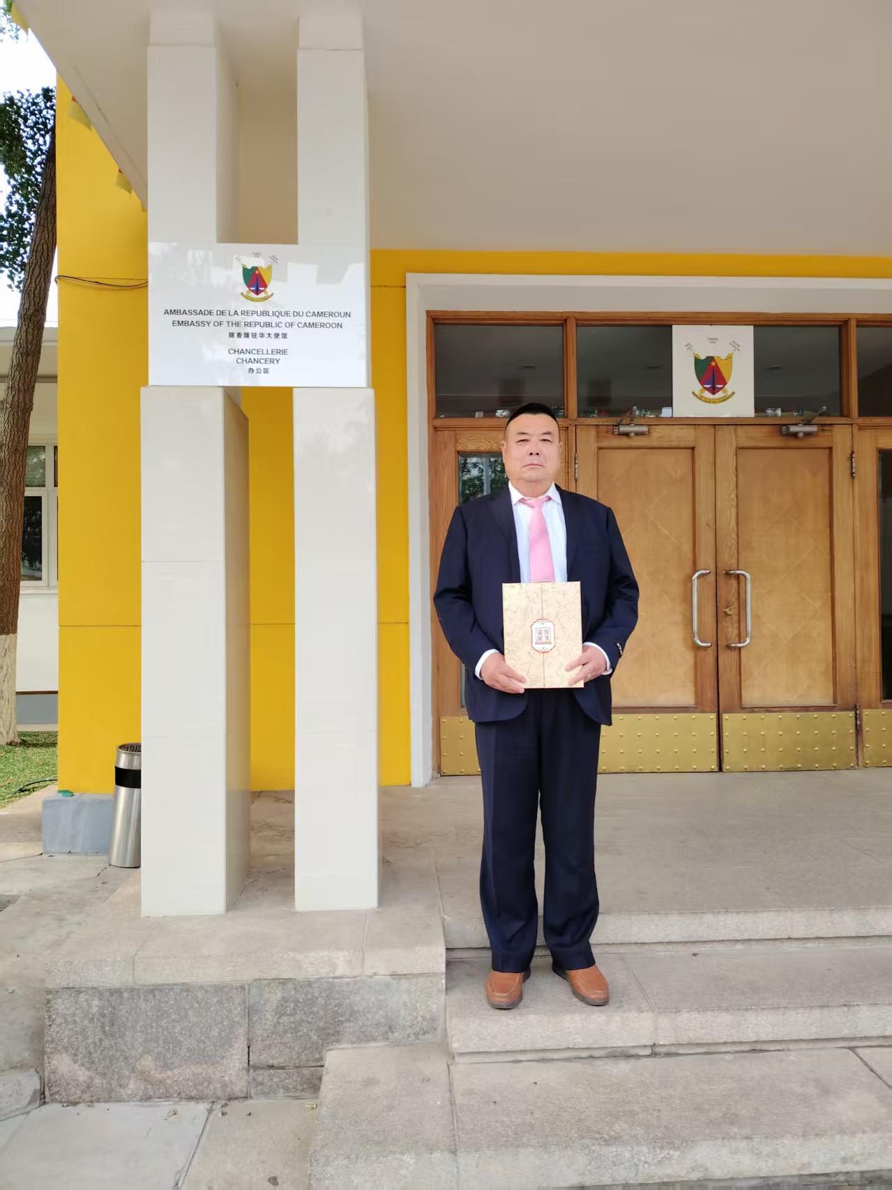 2025年4月26日,中名聯(lián)簽約國(guó)禮藝術(shù)家、非遺傳承人鄭鐵軍應(yīng)邀前往喀麥隆共和國(guó)駐華大使館,參與“一帶一路”中非文化交流活動(dòng)?;顒?dòng)現(xiàn)場(chǎng),其創(chuàng)作的非遺作品《平安福字》被喀麥隆大使館作為國(guó)禮永久收藏,標(biāo)志著河北興隆縣傳統(tǒng)手工藝在國(guó)際舞臺(tái)上的又一次精彩亮相,成為中非文化交流的重要載體??溌●v華使館外交官朱利安·弗雷迪·埃托瓦代表使館,向鄭鐵軍頒發(fā)收藏證書(shū),并授予其“中非文化交流使者”榮譽(yù)稱號(hào) 。