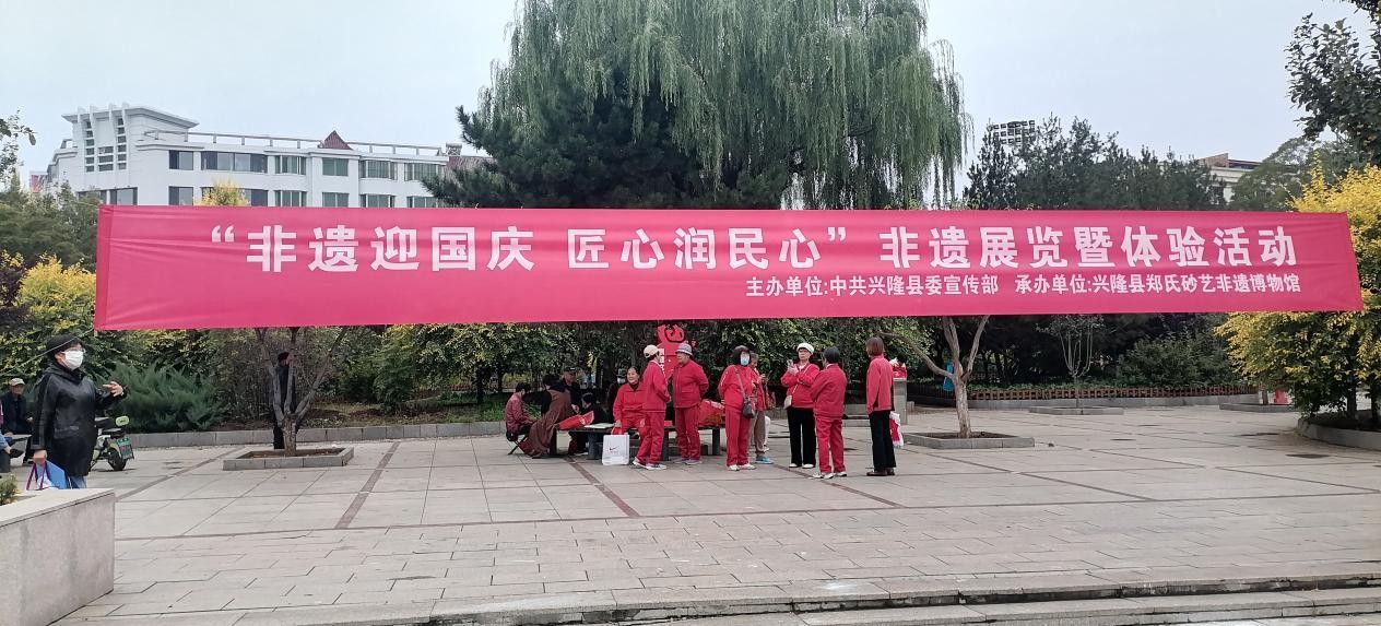 在國慶與中秋雙節(jié)來臨之際,為厚植廣大群眾愛黨愛國愛家情懷,彰顯興隆縣優(yōu)秀傳統(tǒng)文化及非遺技藝的獨特魅力,2025年9月27日下午,由中共興隆縣委宣傳部主辦、興隆縣鄭氏砂藝文化有限公司和興隆縣老科協(xié)傳統(tǒng)文化分會承辦的“非遺迎國慶 匠心潤民心”非遺展覽暨體驗活動在興隆縣人民廣場隆重舉行。興隆縣老科協(xié)領導會員、興隆金峰練字及華童圖書館師生一同參加"迎國慶"主題活動。